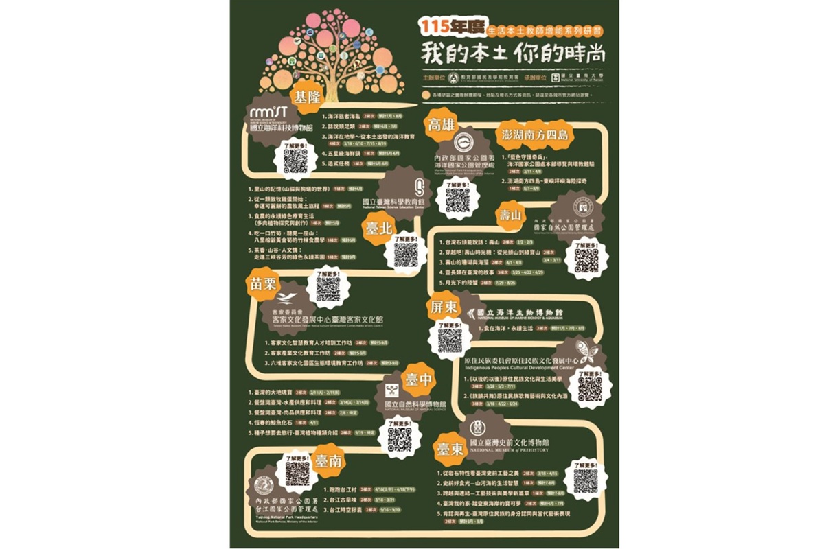 當「本土教育」不再只是課本內容,而是可以親手操作、親身感受的學習經驗,教學現場也隨之展開更多可能。教育部國教署於115年度攜手文化部、內政部、客家委員會、原住民族委員會等部會,以及國立臺南大學與10個館所,共同推動「本土教育人才培育系列課程」,以「生活本土」為主軸,開啟教師專業成長的新視野。