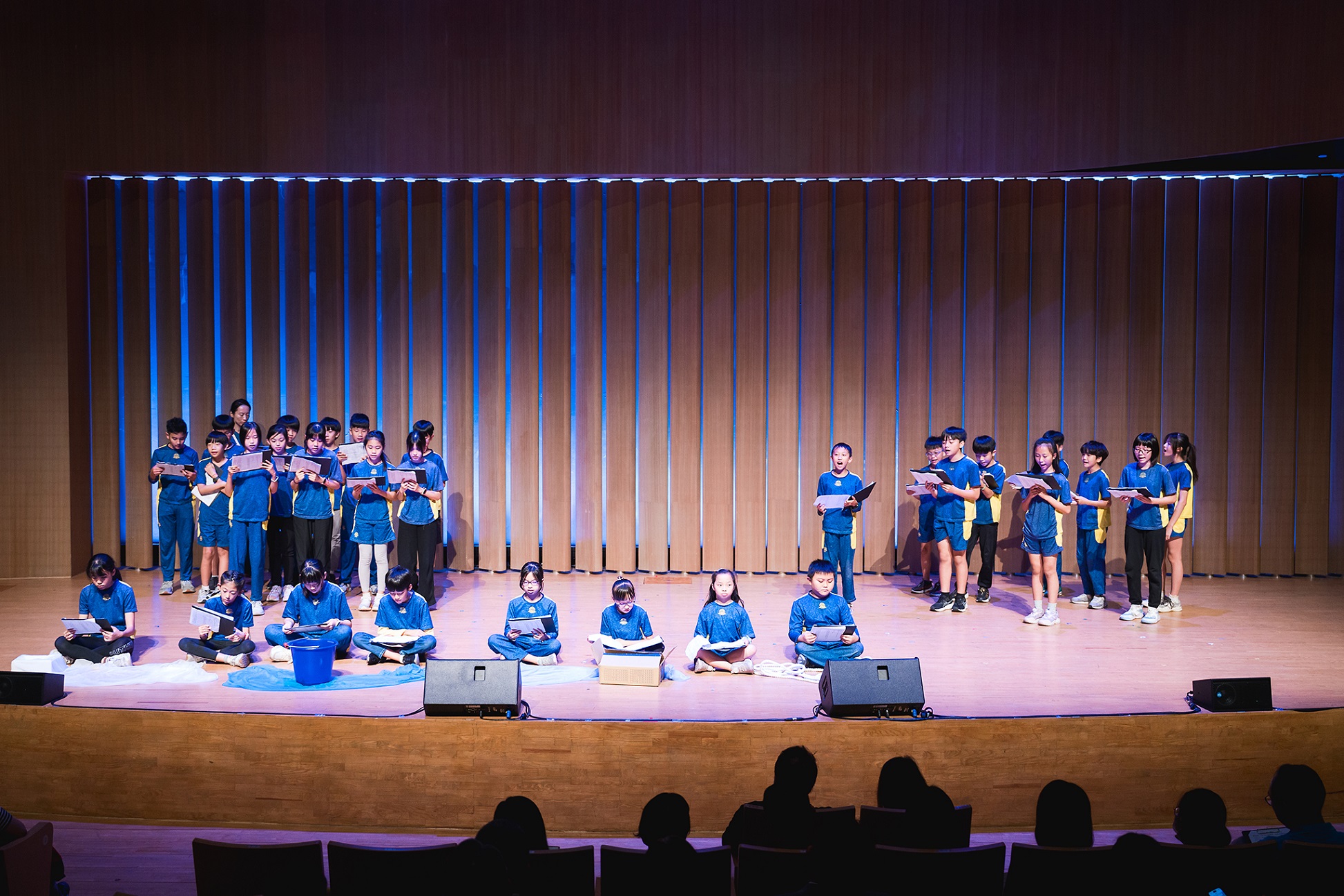 國小端的演出則展現了對生命議題的成熟思辨。楠梓國小與河堤國小不約而同觸碰了「離別」的課題。楠梓國小由張玉梅老師將班級熱衷的大隊接力經驗改寫為劇本〈跑道〉,並結合〈老鷹的兒子〉探討原民文化、喪親之痛與生活中「逃跑」的時刻;河堤國小學生則在排練〈如風之鳥〉和歐陽格格〈貓起來愛〉時,主動開啟關於死後世界的哲學思考。