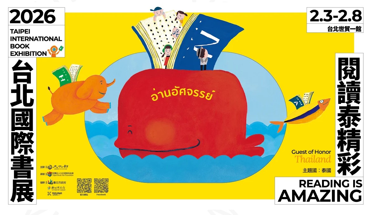 迎接2026年,最精彩的閱讀體驗就在台北國際書展!第34屆台北國際書展將於2月3日至2月8日於臺北世貿一館一、二樓盛大登場,今年以「閱讀泰精彩」為主題,除了泰國主題館之外,匯聚各大主題館與特色書區,從視覺、聽覺、嗅覺到感官體驗全面啟動,邀請所有愛書人於年前率先感受滿滿的文化能量。