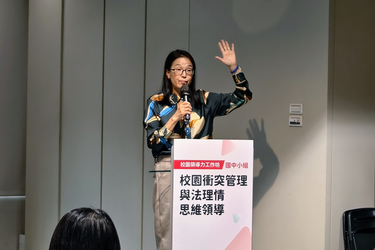 少年調查官吉靜如在校園領導力工作坊提醒,老師需要具備「法意識」,管教需要經得起合法檢視。(攝影/蘇岱崙)