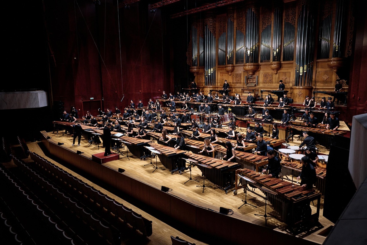 作為地主隊的朱宗慶打擊樂團,則透過融合傳統與當代元素的作品,帶領觀眾認識臺灣擊樂的發展脈絡。特別是在40週年之際,再次登場的「百人木琴」,更是一堂生動的團隊合作示範。當上百位演奏者在同一節奏中協作,學生可以直觀感受到「傾聽」、「配合」與「專注」的重要性——這些正是課堂中反覆強調,卻難以具體呈現的能力。