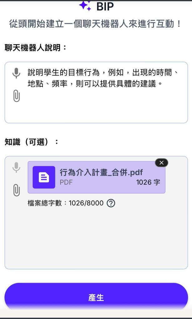 Magic School的自訂機器人功能,讓筆者能根據實際需求打造專屬的聊天機器人,應用於行為介入方案與課程設計中(見下方圖一到圖三的說明)。