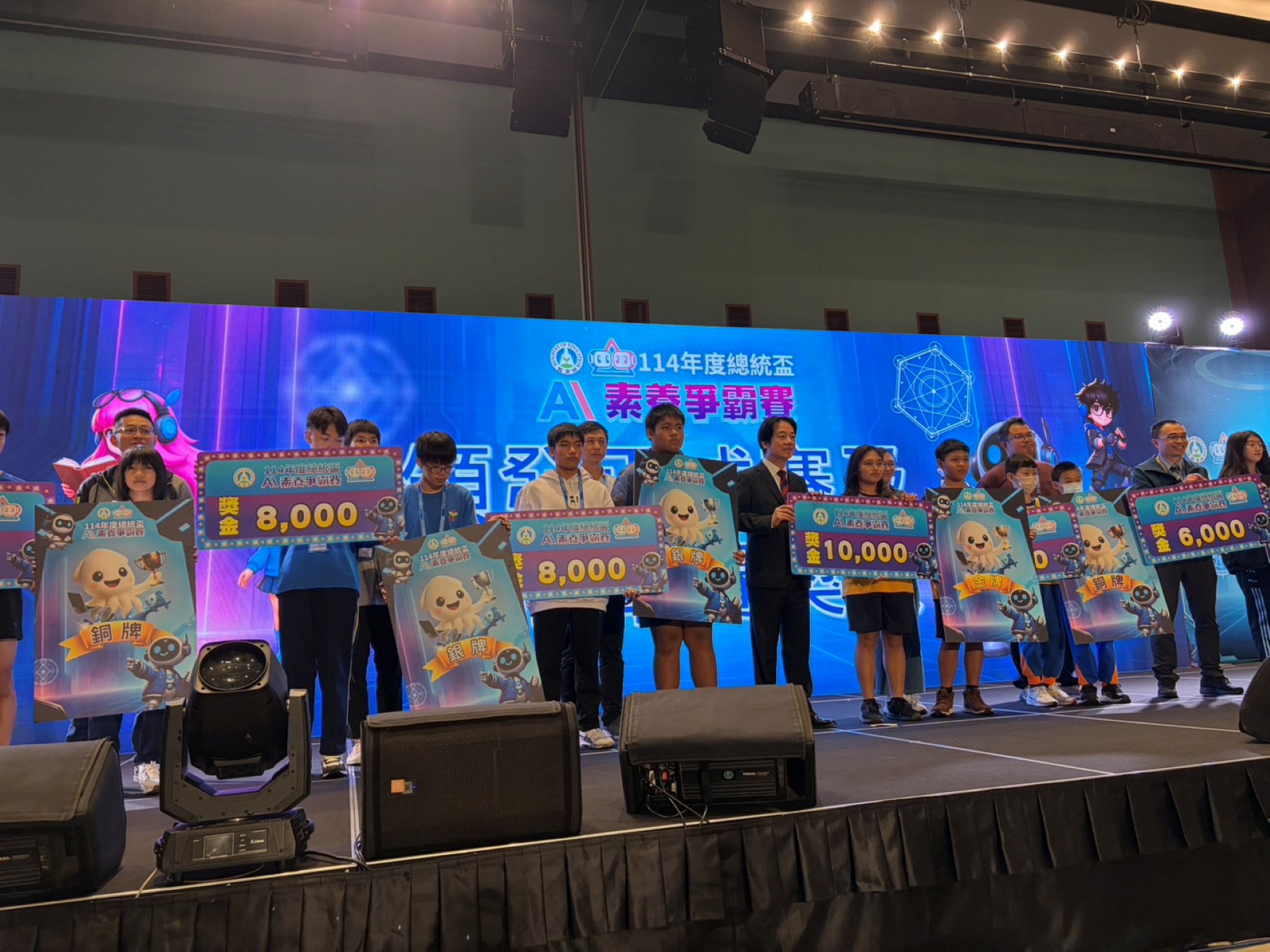 頒獎典禮上,總統賴清德親臨現場,與教育部劉國偉次長共同頒發獎牌與獎金,鼓勵選手持續精進。這份榮耀不僅屬於獲獎隊伍,更象徵臺灣AI教育的向下扎根與全面推展。
