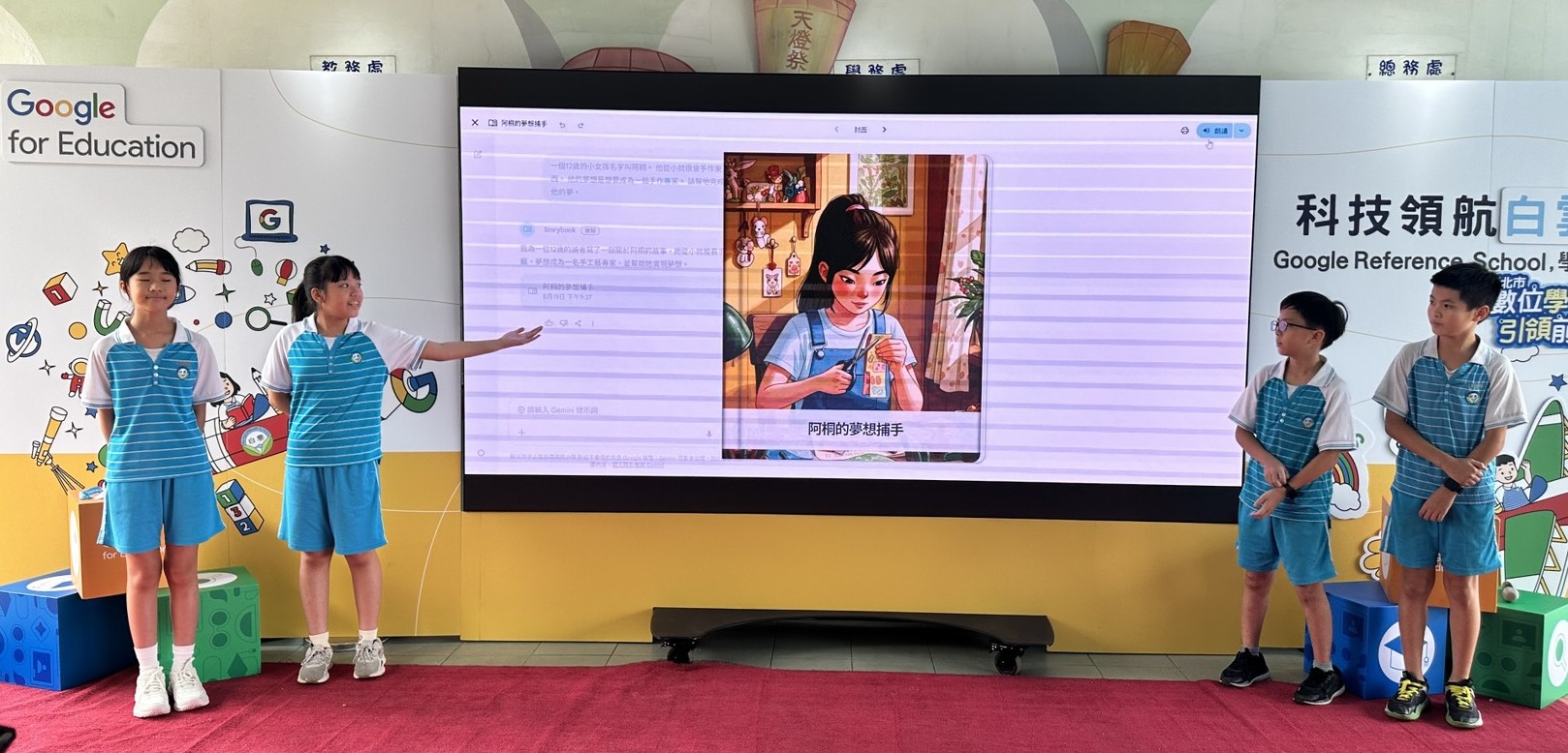 現場,高年級同學們親自體驗了最新的 Google AI 教育科技,向與會的嘉賓展示如何與Gemini AI一起人機協作動手寫程式。施校長說,看到孩子們一個個變身為小小工程師,那份感動真的難以言喻!