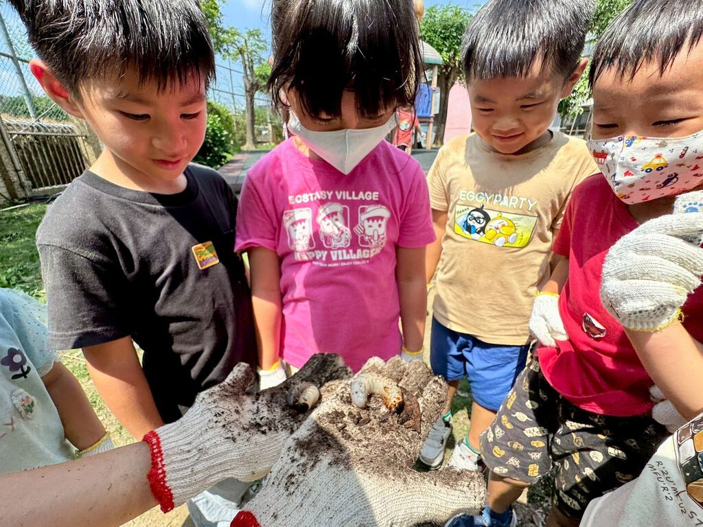 肥滋滋的雞母蟲,顯示土壤的豐厚與肥沃,也讓孩子們大開眼界。