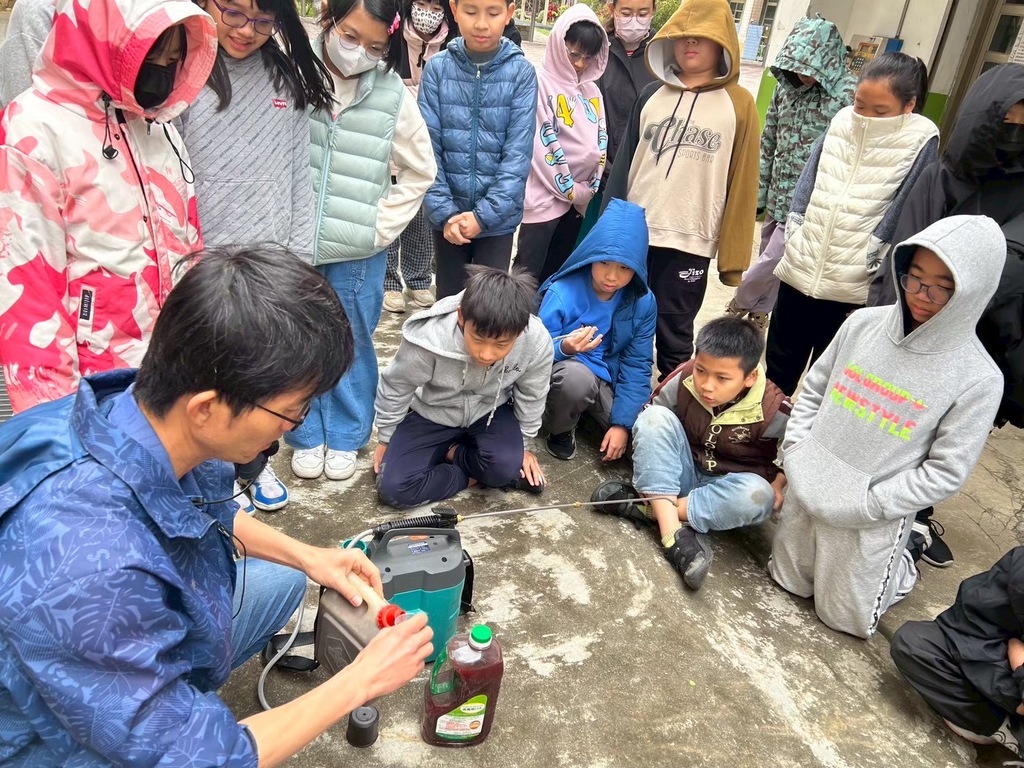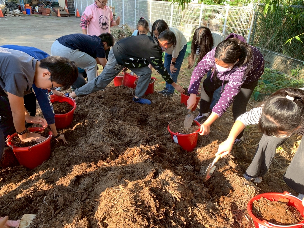 賴來安先生得知困境後,便帶來了聰明的解決方案。他帶著學生將兩種農業廢棄物「種植杏鮑菇的廢棄木屑粉」和「洋菇的廢棄稻稈」拌入校園的泥土中,不僅改善了土壤過硬的問題,也大大提升了排水性,讓泥土變得十分適合種植。