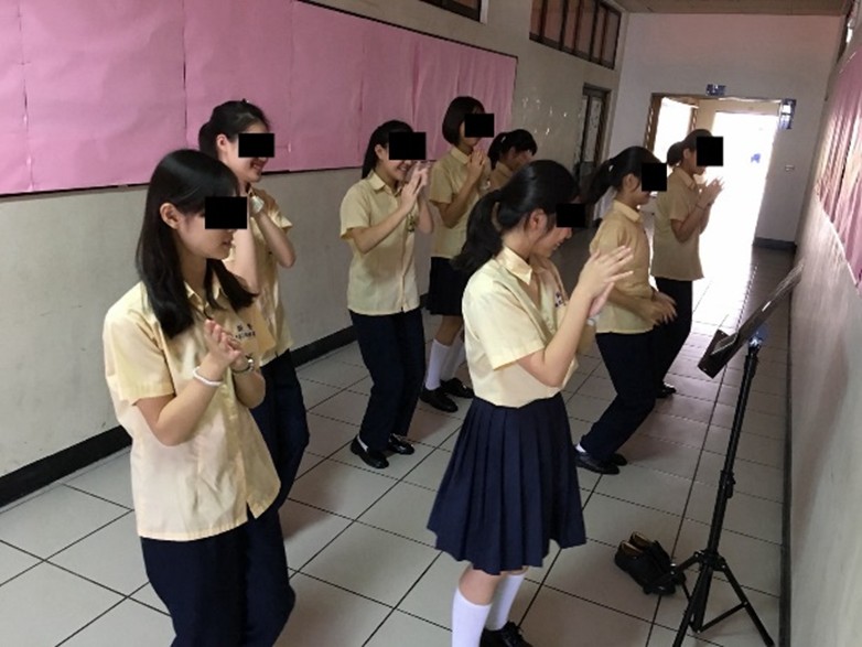 (圖三)學生在走廊上認真練習要表演的流行歌舞。