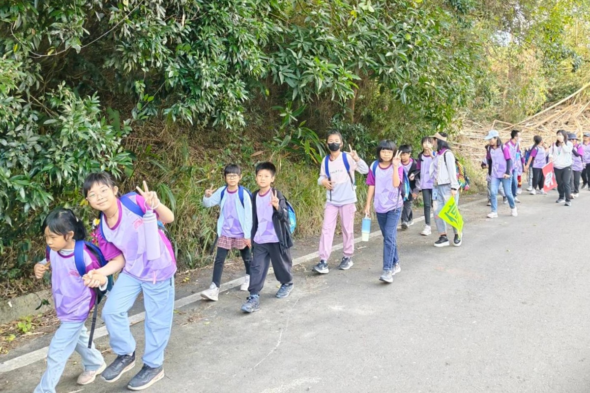 學生從吉貝耍國小走路到水雲校區進行戶外教學。