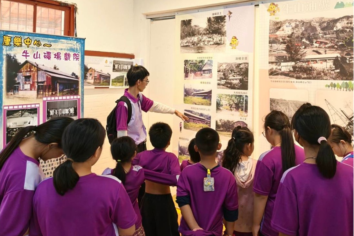 在水雲校區的常設展,學生聆聽導覽解說牛山礦場的故事。