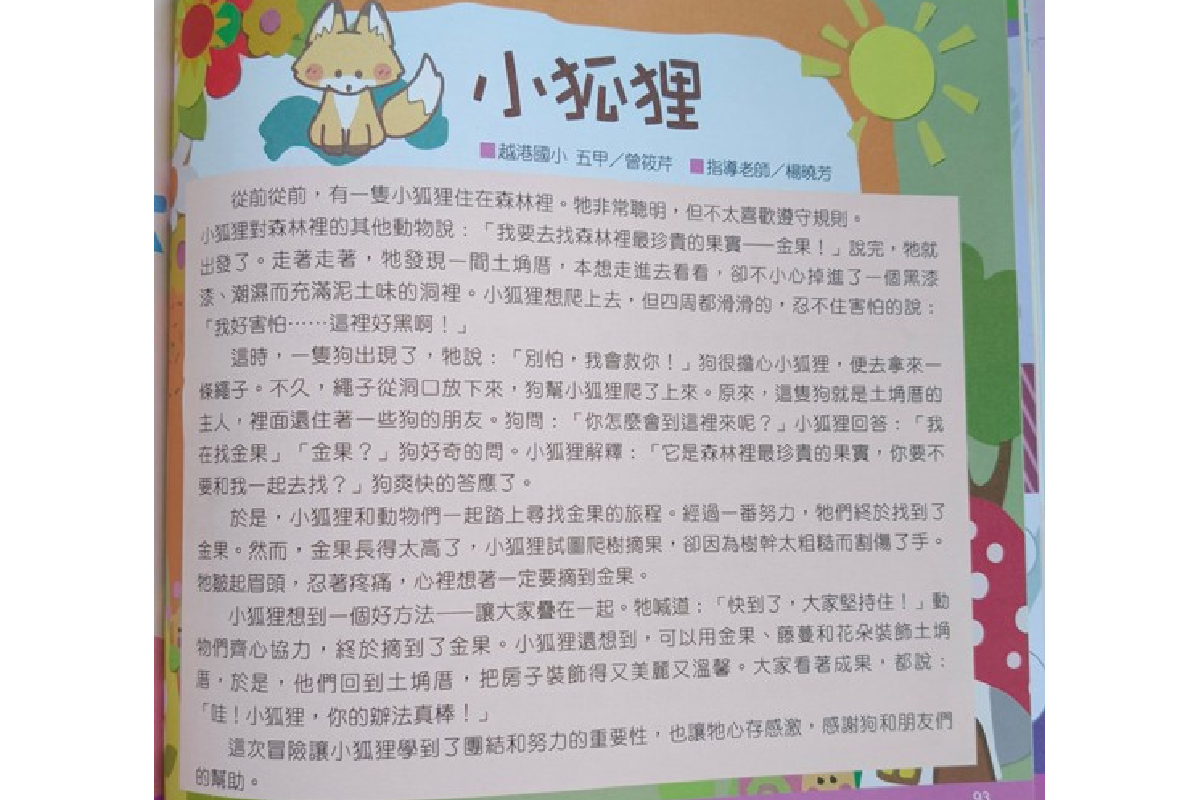 曾筱芹同學刊登於《雲林綠芽》的作品《小狐狸》照片。