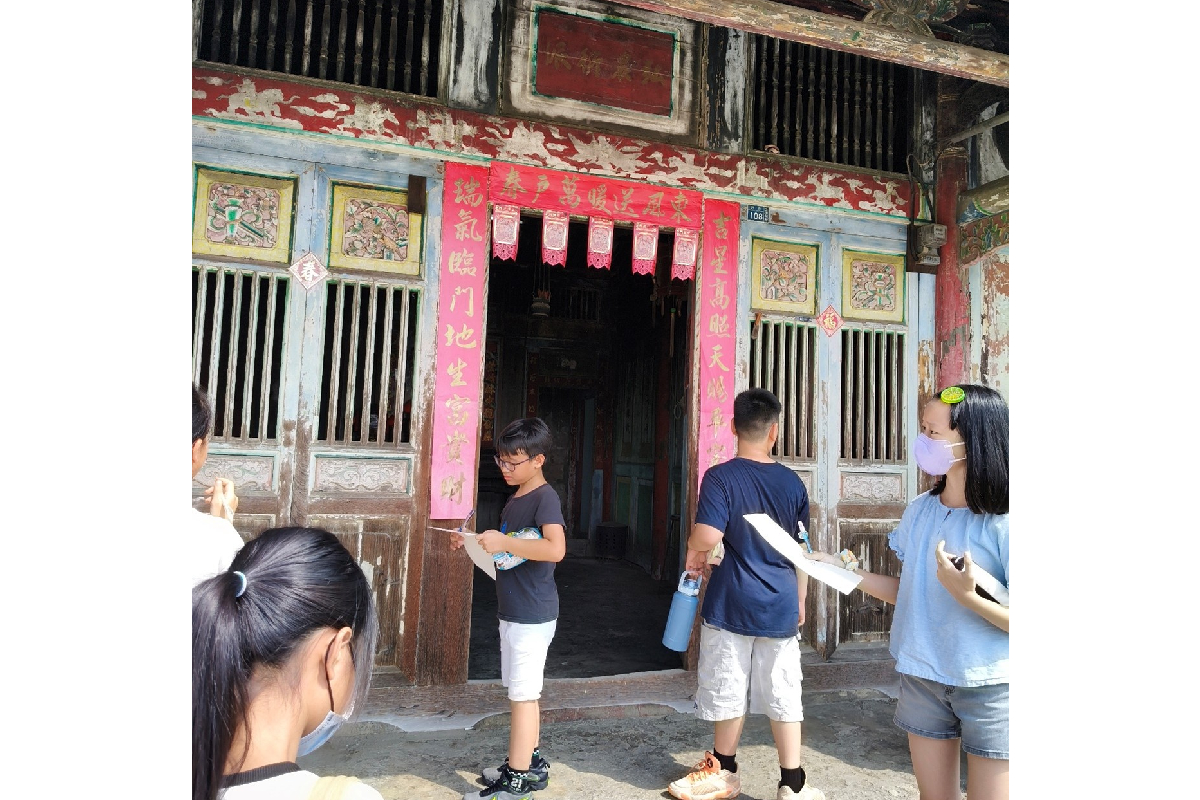 學生於土庫秀潭楊家古厝進行紙本解密任務側拍。
