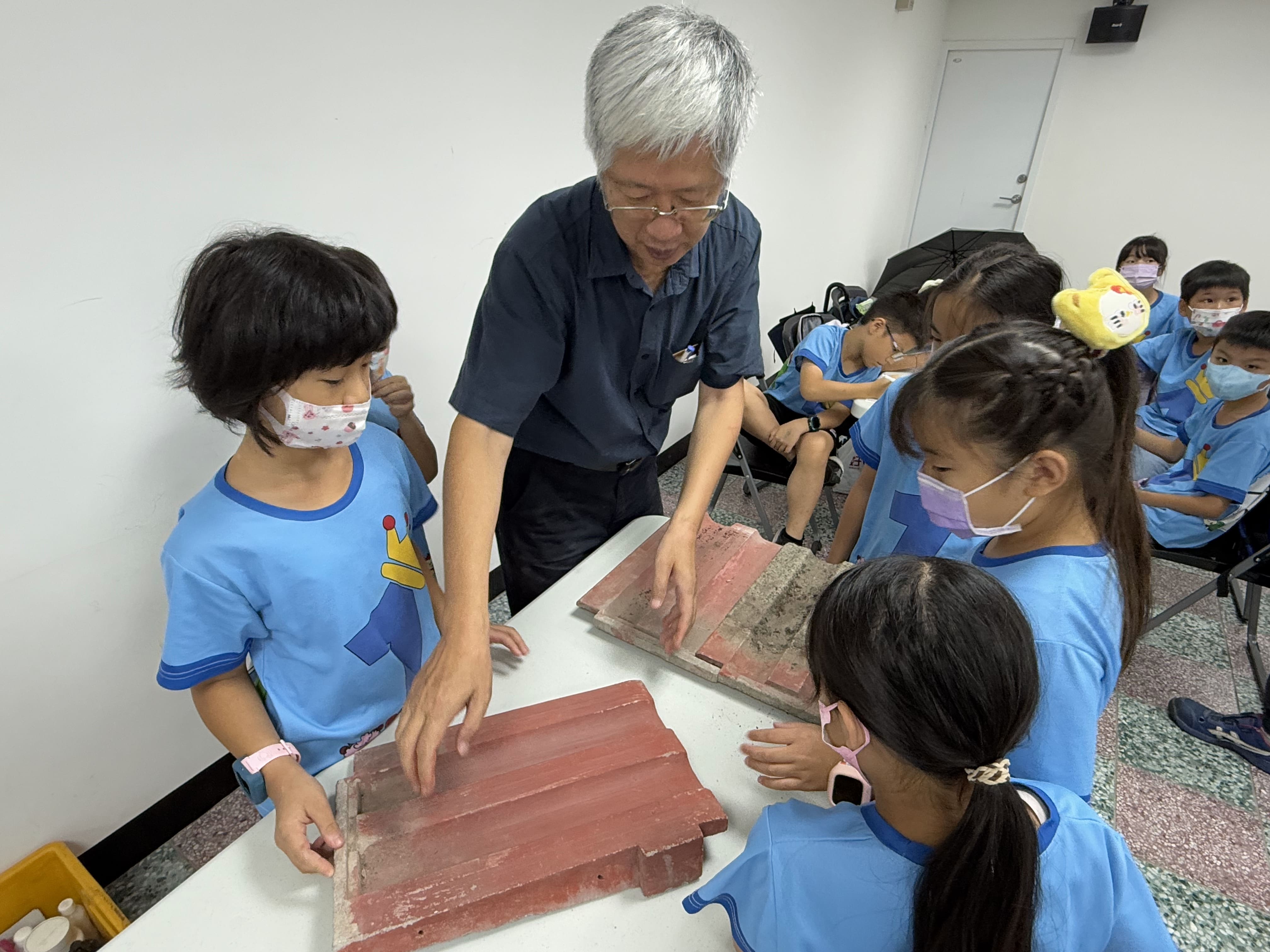 為了讓行動不只是「想」,我們跨校請到了銘傳大學建築系的梁銘剛教授。梁教授帶著孩子踩在眷村的土地上,一邊講解建築工法,一邊讓孩子伸出雙手,實際觸摸那疊了多年的厚實屋瓦。那種粗糙的質地,讓孩子們深刻感受到文化遺產的份量。