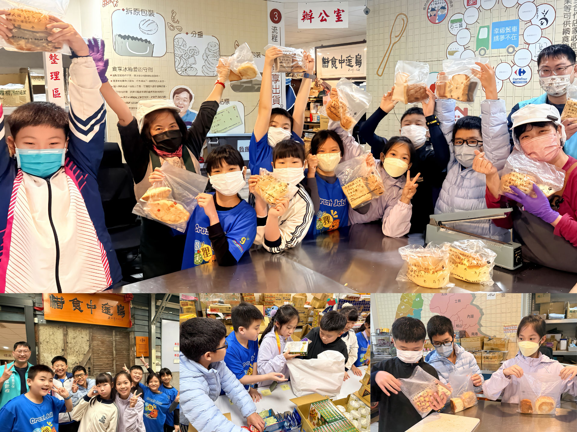 為擴大影響力,我們與推動惜食永續的南機場忠勤里方荷生里長合作。學生前往「惜食中途島」,將未售出但安全無虞的麵包進行衛生檢查與分裝。同時走訪食物銀行,瞭解貧窮經驗者如何以點數自由選購的「尊嚴互助」機制。