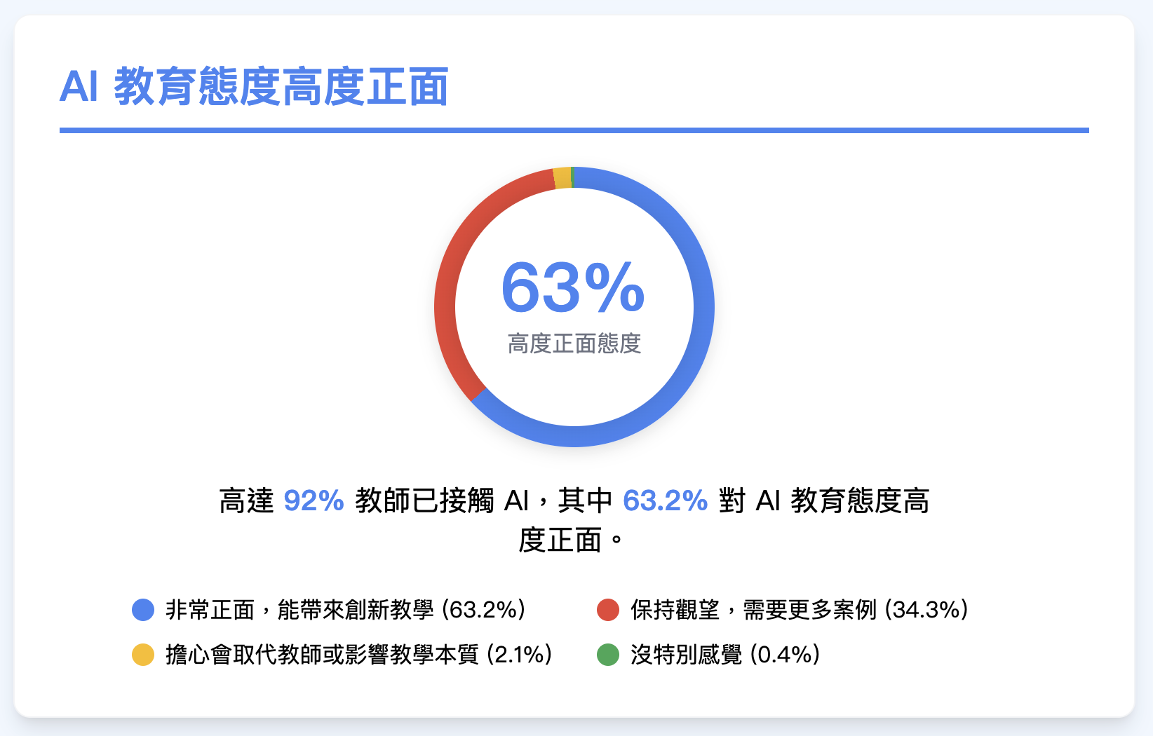 1. 92%教師已接觸AI,63%對AI教育態度高度正面