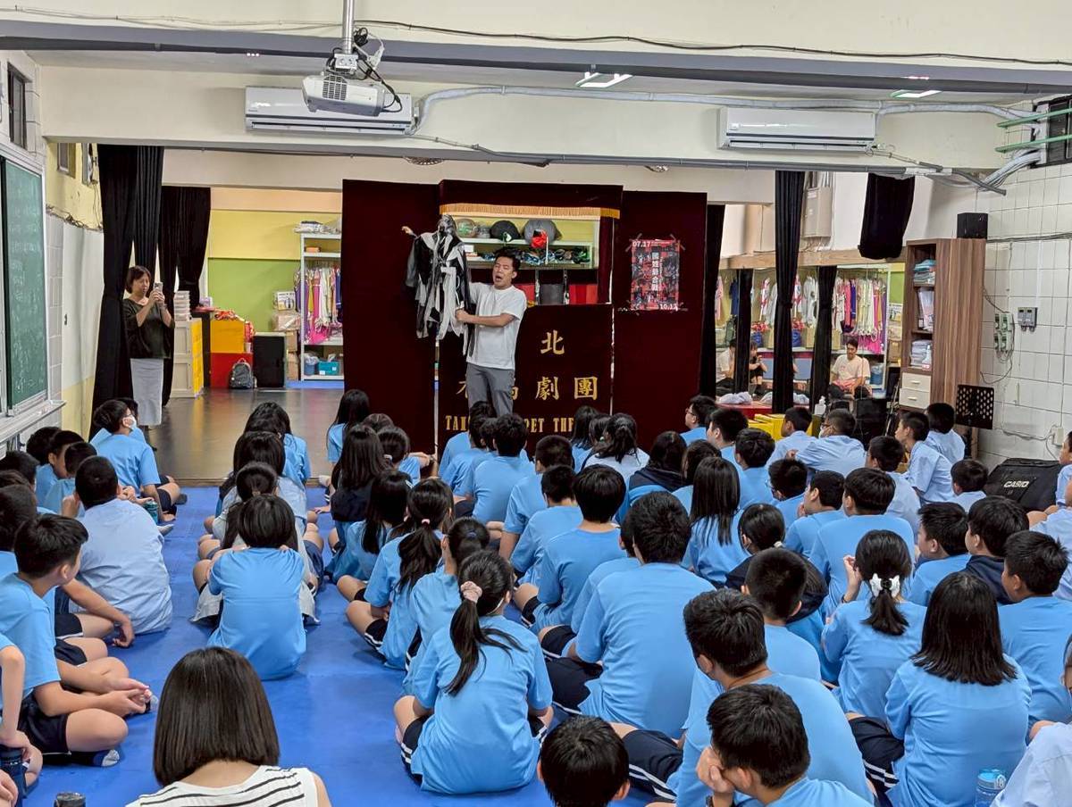 漳和國中邀請臺北偶劇團來校演講,讓學生了解不同的藝術表達形式。(新北市教育局提供)