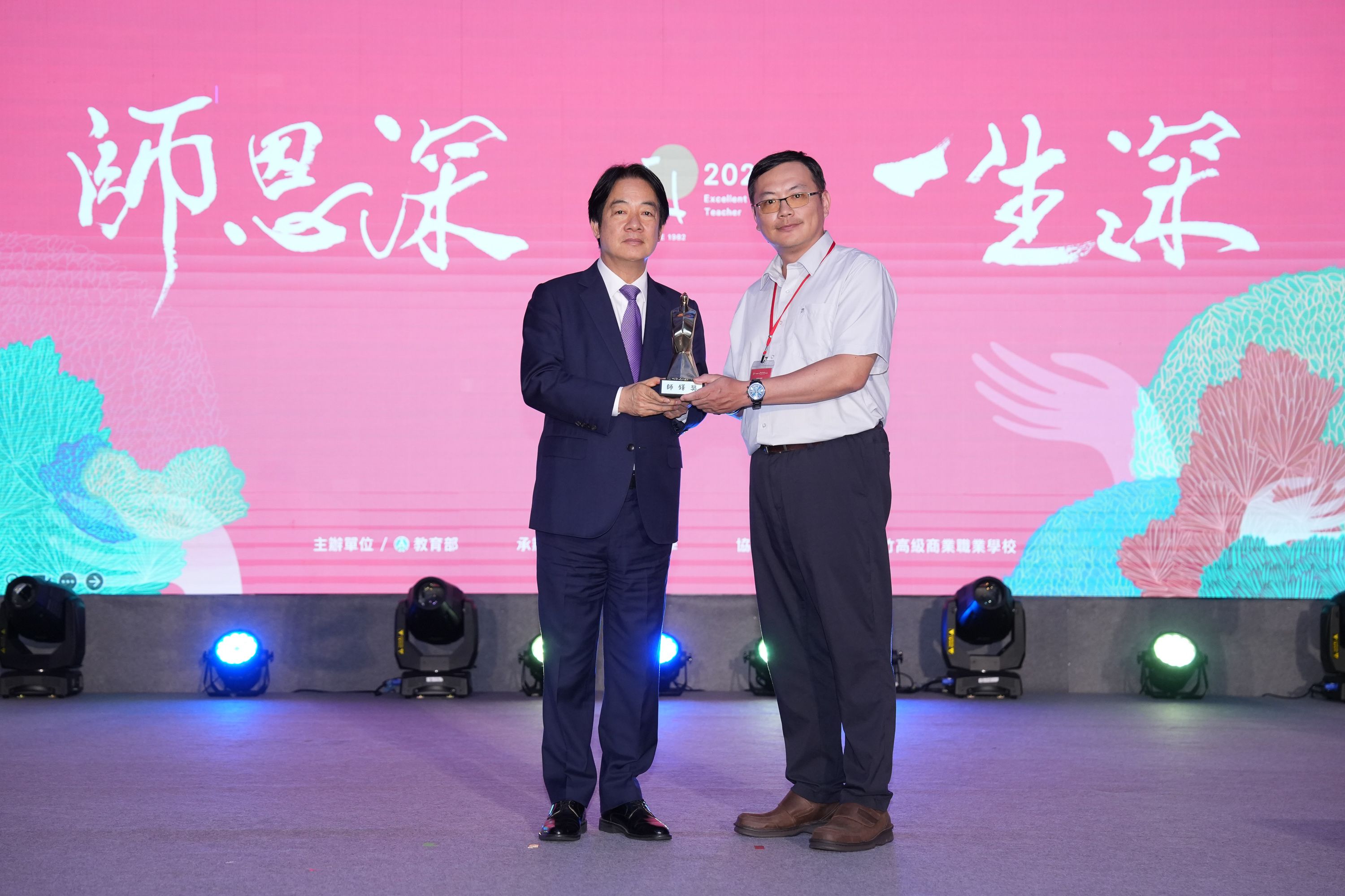 葉志偉老師榮獲師鐸獎肯定,由賴清德總統頒發獎項。