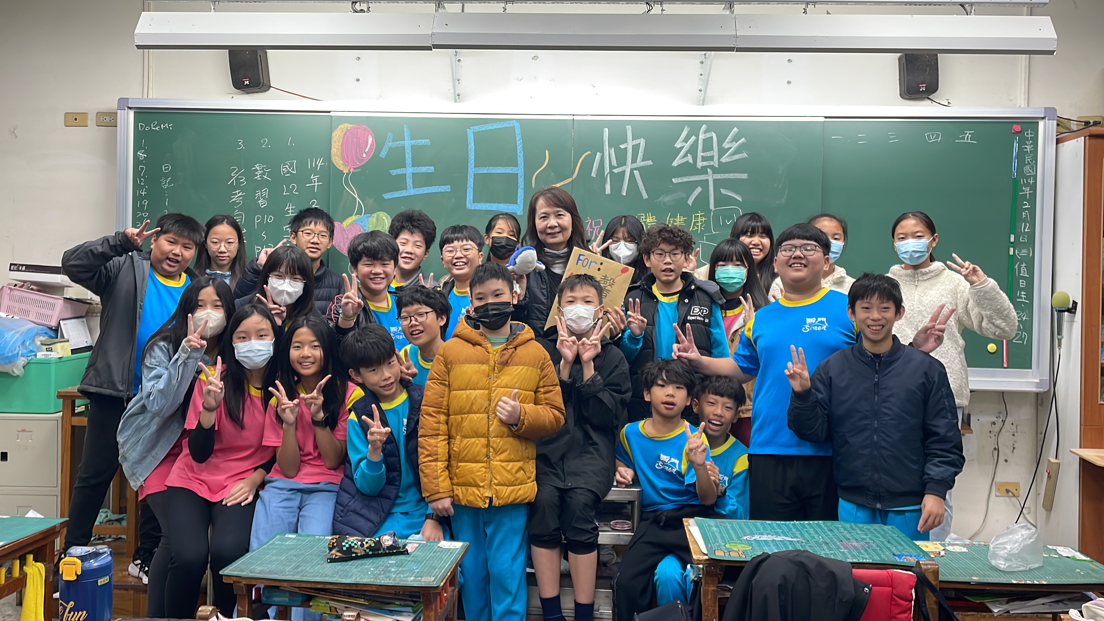 邱馨慧(中間長髮者)以無比的熱忱投入教育崗位,得到孩子的擁戴與喜愛。