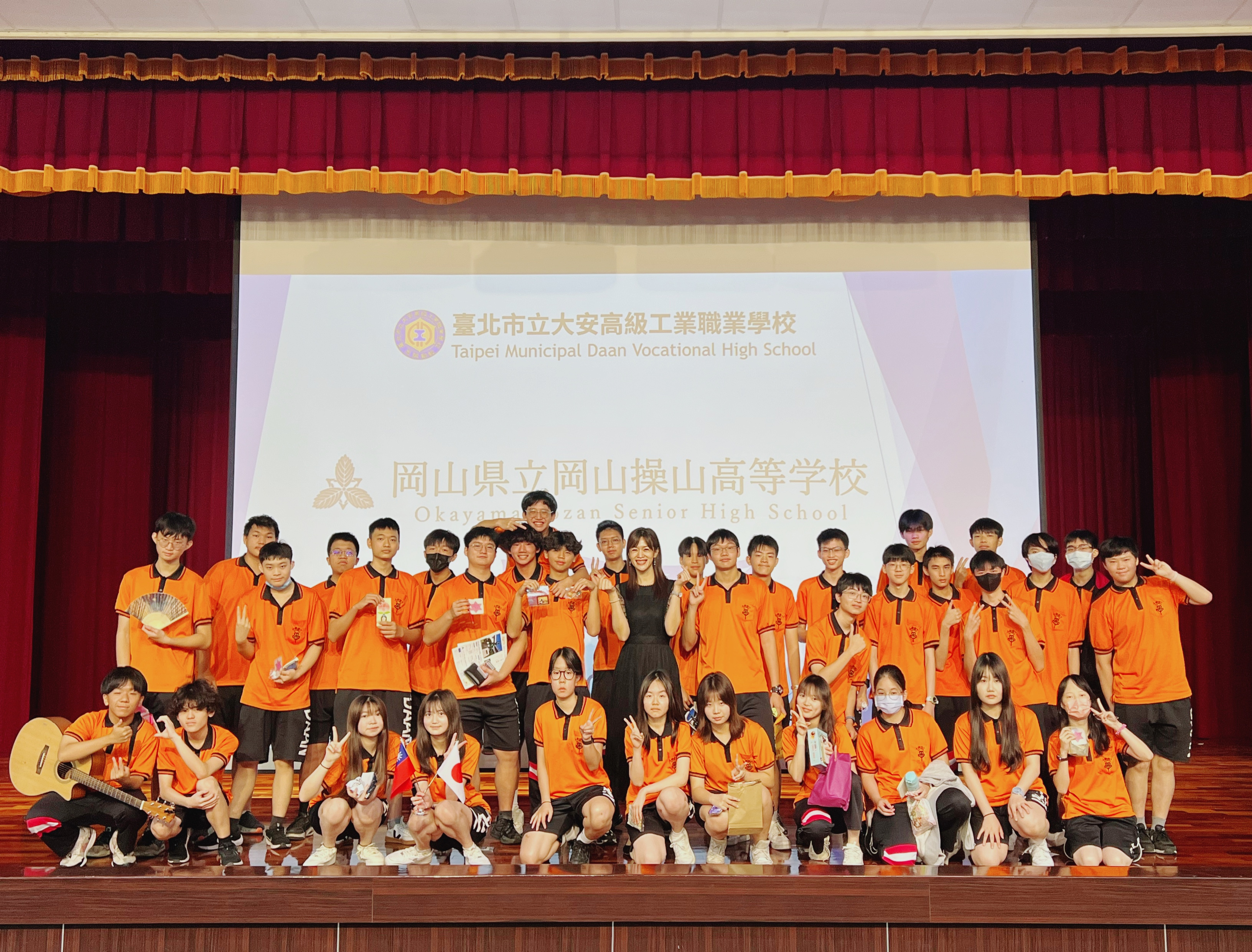 陳怡嘉(黑衣者)帶領班上同學與日本高中生進行文化交流。