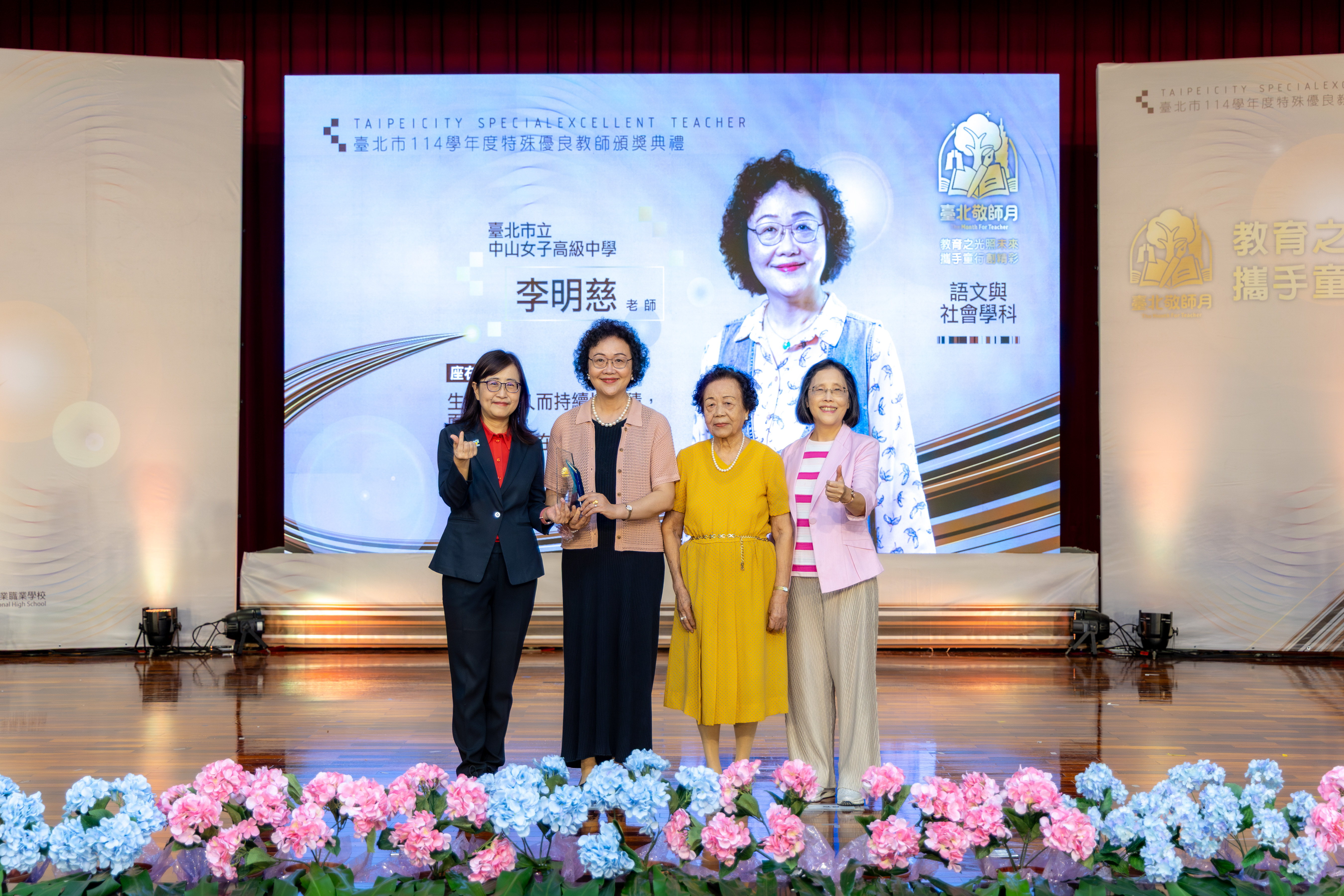 李明慈(左二)曾兩度獲得教育部教學卓越獎金質獎,並獲得2025年師鐸獎。